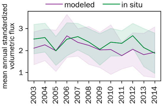 2.7. Comparison between In Situ and Modeled Volumetric Time Series