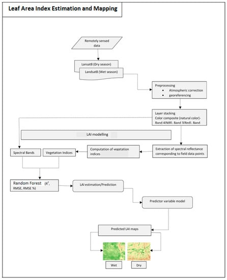 - LAI could be estimated with high accuracy during the wet season when compared to the dry season using RF model—a previously challenging task with traditional linear techniques.