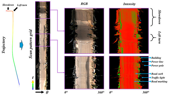 - By using the reconstructed trajectory, the unorganized mobile lidar point cloud can be structured into a scan pattern grid, which can support efficient data indexing and visualization.