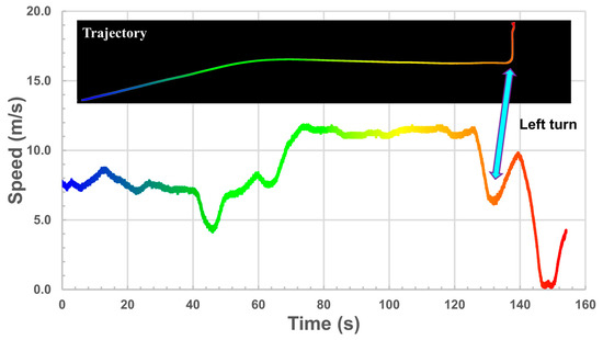 To evaluate the proposed framework qualitatively and quantitatively, we utilize a mobile lidar dataset (“Phil”) collected by Leica Pegasus:Two mobile lidar system in a suburb area located at Philomath, Oregon, United States for the experiment. The dataset contains 75,637,495 points with an angular resolution of 0.07°. The duration, length, and speed of the data collection are summarized from the trajectory data (Table 2). Note that the dataset for the evaluation covers a wide range of speeds, as well as multiple driving actions (e.g., accelerations, slowdowns, and turns, Figure 7).