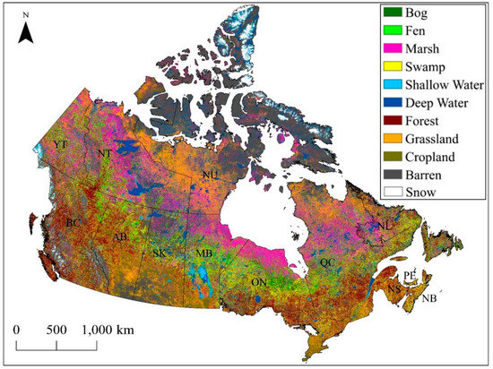 This project was supported by the Canada Centre for Mapping and Earth Observation of Natural Resources Canada (NRCan). Field data were collected by numerous individuals from various organizations, including Environment and Climate Change Canada (ECCC), Ducks Unlimited Canada (DUC), Northeast Avalon Atlantic Coastal Action Program, the Memorial University of Newfoundland, and the University of Lethbridge. The authors thank all these organizations for their generous support and for providing such valuable datasets.
