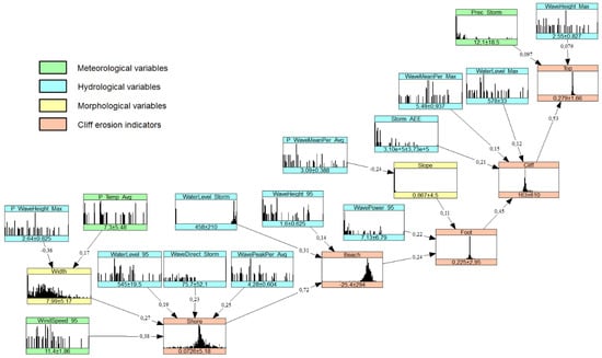 - Each variable was connected only to one node containing a cliff erosion indicator.