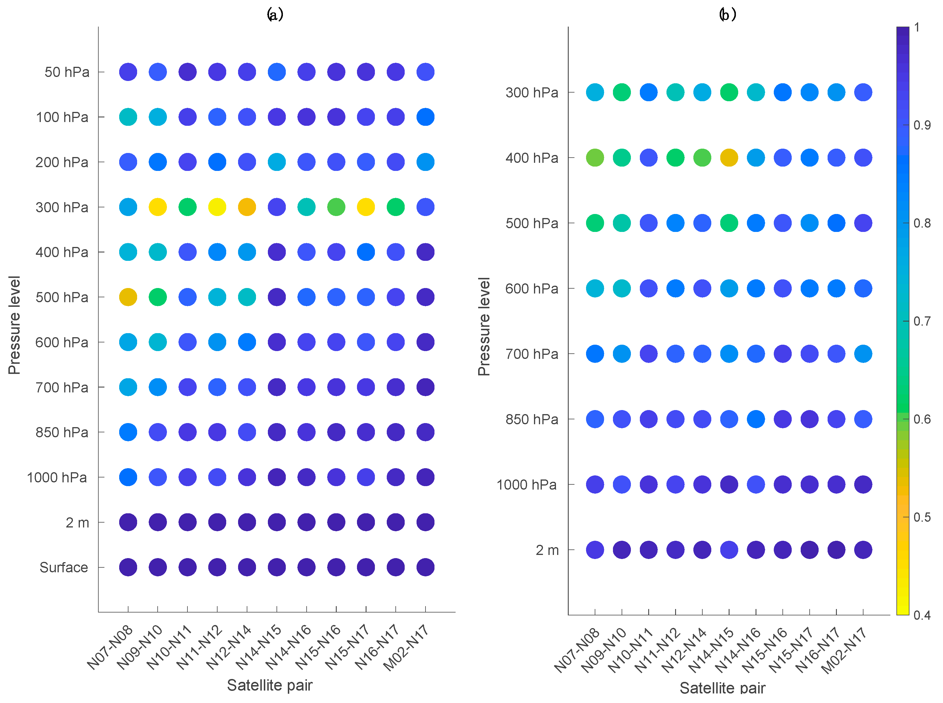 | Satellite Pair | Date Range | No. Profile Matchups | Coverage 1 |