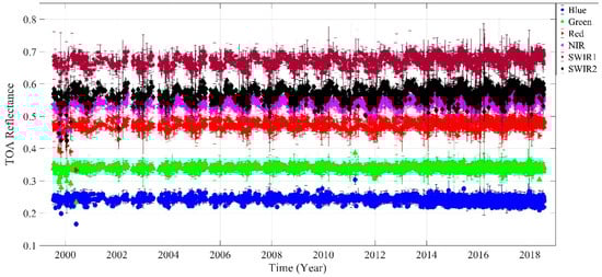 - Kim, W.; He, T.; Wang, D.; Cao, C.; Liang, S. Assessment of long-term sensor radiometric degradation using time series analysis. IEEE Trans. Geosci. Remote Sens. 2014, 52, 2960–2976. [Google Scholar] [CrossRef]