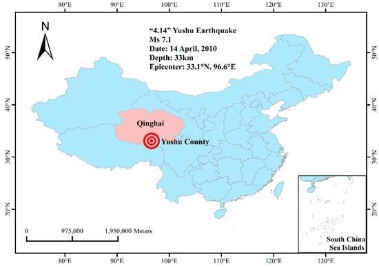 The study case and the experimental data are introduced in this section to facilitate the analysis in the following sections. In this paper, the magnitude 7.1 Yushu earthquake that occurred on April 14, 2010, in Yushu County (Qinghai province, China) is used as the study case. The epicenter location of the Yushu earthquake was in 33.1°N and 96.6°E. The map of Yushu County location is displayed in Figure 9. The Yushu earthquake-induced damage in this region is huge. More than 2600 people died and many building were damaged during this earthquake. The total of the direct economic losses reached more than 22 billion CNY. The urban area in Yushu County is selected as the study area for this paper. Yushu County is located in Qinghai-Tibet Plateau with high altitude, and it belongs to an arid area. As a result, the vegetation of the study area is low-level and very sparse, so it was neglected in our experiment. The buildings in the study region are mainly simple low-rise residential buildings.