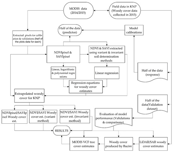 Flowchart showing data sets and processing procedure for the estimates of woody cover in KNP.