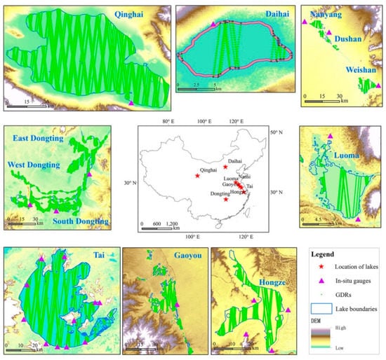 Lakes are a key component of the earth’s surface system and serve as a meeting point for the atmosphere, geosphere, hydrosphere, and biosphere. Changes in lakes and their induced environmental evolutions are the result of global and regional climate events, to which they show great sensitivity. It is, therefore, important to continuously monitor the water levels of lakes. In situ gauge stations provide precise water-level observations, but they are limited to relatively few lakes because they are expensive, especially in remote areas. In addition, in situ water-level data are usually managed by government institutions who sometimes make data access difficult. Therefore, satellite altimetry has become a valuable tool to monitor the water levels of lakes.