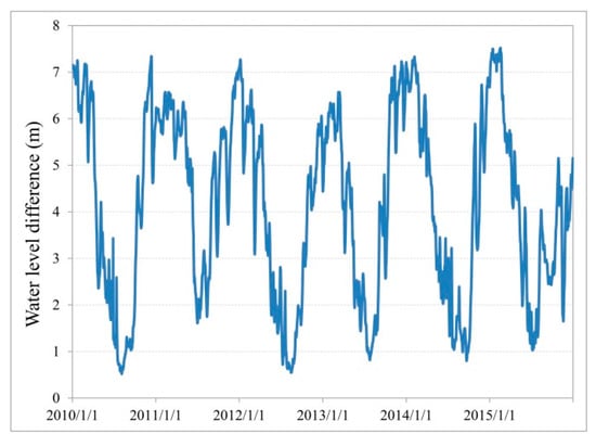 There were two global hydrological databases used in this study, including the DAHITI [] and HYDROWEB []. DAHITI and HYDROWEB provide water level time series of lakes from multi-mission satellite altimetry for hydrological applications. Altimeter missions included Topex, Jason, GFO, Envisat, ERS, Cryosat, IceSAT, SARAL/Altika, and Sentinel. Water level time series of three lakes (Tai, Qinghai, and South Dongting) with normal heights were obtained from the DAHITI website (https://dahiti.dgfi.tum.de/en/). Products of two lakes (East Dongting and Hongze) were also obtained from the HYDROWEB site (http://hydroweb.theia-land.fr/). The series used in this study were from 2010 to 2015. Altimetry water levels were observed with SARAL at Tai and Qinghai lakes, while water levels were measured by Jason-2 at South Dongting, East Donting and Hongze lakes.