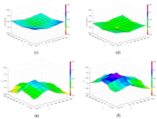 where and are additional regularization parameters used to balance the information from the image similarity and label co-occurrence, respectively. When , Equation (3) degenerates to GNMTF, and when , Equation (3) degenerates to the standard NMTF.