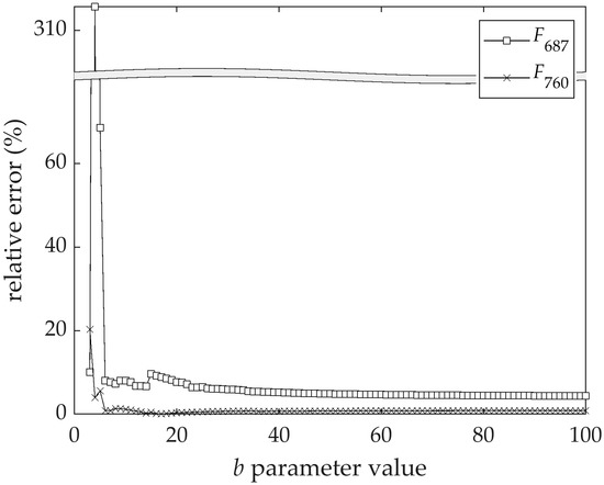 In the study presented here, the Gaussian function performed better than the Voigt function in modeling F (and R2 = 0.96 and R2 < 0.5 for the Gaussian and Voigt functions, respectively). Cogliati et al. [13] propose that different sensor spectral responses (e.g., SR, SSI, and SNR) may lead to different functions to best represent R and F. This may explain why, for proximal sensing spectrometers, a Gaussian function was the most suitable algorithm to model F [40] instead of a Voigt function as suggested by Cogliati et al. [13] for FLORIS, FLEX space-borne sensor.