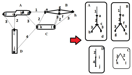 Then we move to segment C, where connection between node ‘e’ to ‘k’ takes place. Lastly, we move to component D, where we connect node ‘i’ to node ‘c’. We follow an iterative process, so that each unconnected segments gets a chance to get connected until all segments are connected (as shown in Figure 7.
