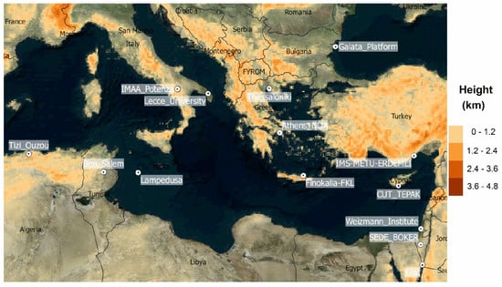 - Floutsi, A.; Korras-Carraca, M.-B.; Matsoukas, C.; Hatzianastassiou, N.; Biskos, G. Climatology and trends of aerosol optical depth over the Mediterranean basin during the last 12 years (2002–2014) based on Collection 006 MODIS-Aqua data. Sci. Total Environ. 2016, 551, 292–303. [Google Scholar] [CrossRef]