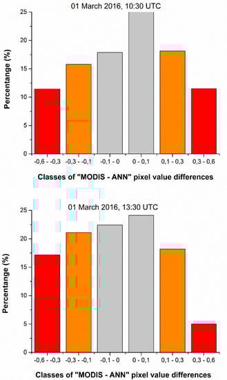 4.2.2. Evaluation of ANN Model Outputs against the Moderate Resolution Imaging Spectroradiometer (MODIS)