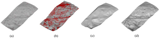 where is the number of ground points correctly classified, and is the number of non-ground points incorrectly classified as ground points. The statistics in Table 4 indicate that the accuracy of ground seed points acquired by the proposed algorithm is extremely high, and the average is 98.39%. To assess the quality of ground seed point extraction intuitively, S11 is selected as the representative case for demonstration. As shown in Figure 21a,b, the ground seed points provided by the proposed algorithm can cover the terrain features and retain fine details, especially for steep slopes. The detailed changes in the terrain can be presented relatively well, especially for the regions of significant variations in the terrain. Figure 21d shows that the initial provisional DTM constructed from the proposed algorithm is rather near the actual terrain, which is important because the subsequent PTD is based on the initial terrain.