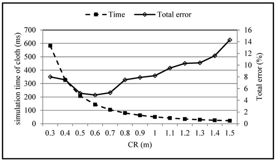 Cloth simulation time and total error at different values.
