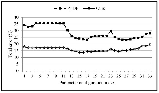 The graph of the relationship between the total error and parameter configuration index.