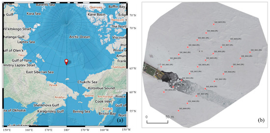 (a) Location of the sea-ice survey; and (b) overview of the drone image acquisition on the sea-ice surfaces.