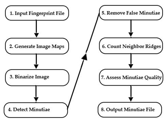 Flow chart for the MINutiae DecTeCTion (MINDTCT) algorithm [31,32].