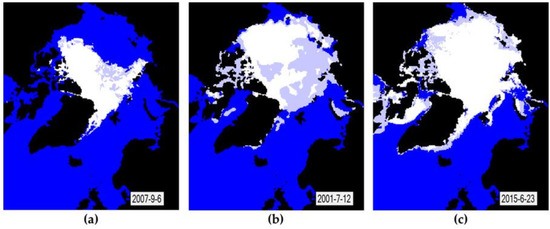 - Cavalieri, D.J.; Markus, T.; Comiso, J.C. AMSR-E/Aqua Daily L3 12.5 km Brightness Temperature, Sea Ice Concentration, & Snow Depth Polar Grids, Version 3; NASA National Snow and Ice Data Center Distributed Active Archive Center: Boulder, CO, USA, 2014. [Google Scholar] [CrossRef]