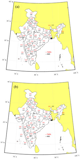 The rain gauge observations of the IMD are available for 104 years (1902–2005) [14,15]. Similarly, the satellite-based TRMM Multi-satellite Precipitation Analysis (TMPA) is available for a 17-year period (1998–2015) [16,17]. Both of these rainfall products are utilized to compute the onset and demise of the ISM at 0.25° × 0.25° grid interval.