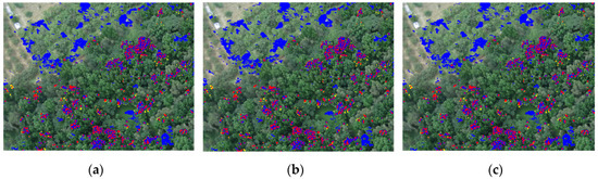 It is also worthy of note that only one image scene is used in this study; thus, collecting more data images in the same area every year will definitely occur in future work. However, the best that can currently be done for target detection is to generate the desired target information before collecting more data. Unlike [55,56], which used lab data with in-scene calibration to improve target detection in hyperspectral images, this study only has RBG bands images, which have very limited spectral information. In this case, OSGP, as proposed in [30], was applied in this study to generate the optimal desired targets, which can provide stable and consistent results. Figure 19 compares global and local versions of CEM algorithms with/without using OSGP; the ones with OSGP all have some reasonable improvement, as compared to those without OSGP.