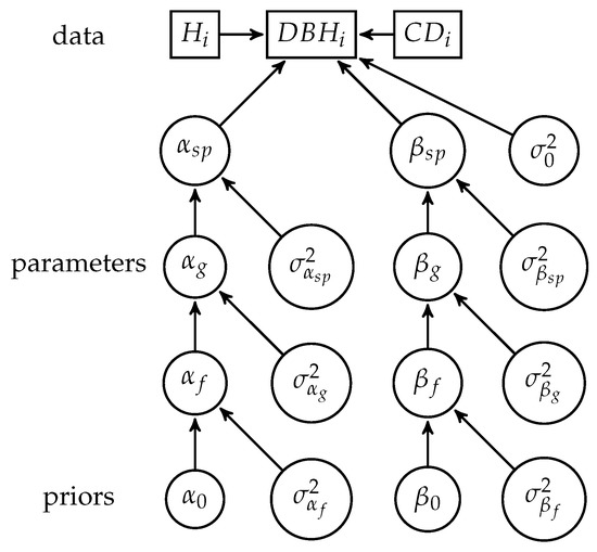 Hierarchical structure of the allometric model for DBH.