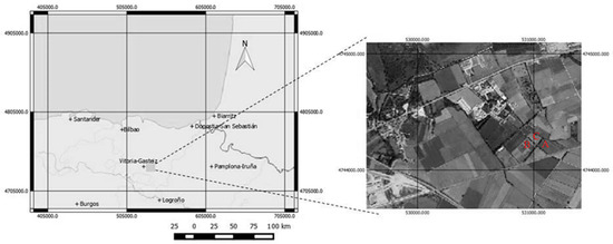 In the area (Figure 1) where this study was carried out (Araba, Basque Country, norther Spain), the application of organic fertilizers is generally combined with the application of mineral fertilizers. Farmyard manures are typically applied as a basal dressing before sowing. For mineral fertilizers, an application is made at GS21 [2] and the last and greater mineral N dressing application is made at GS30 [2].