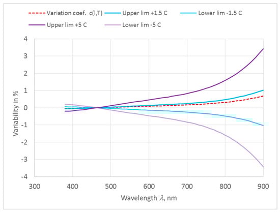 Relative variability of calibration coefficients due to temperature deviations from the reference temperature 21.5 °C.