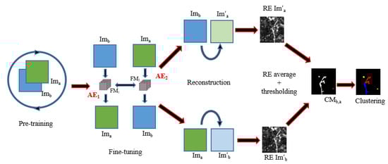 Figure 4. Algorithm flowchart. - During the second step, we fine-tune the model and then calculate the RE of from and from respectively for every patch of the images. In other words, the RE of every patch is associated with the position of its central pixel on the image.