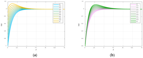Variation of function s at different values of f and l. (a) and in , (b) and in .