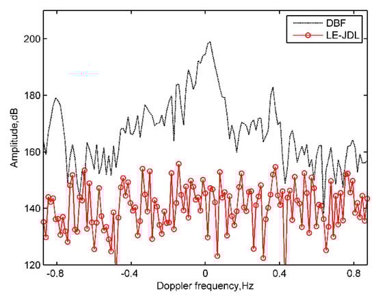 Figure 11. Doppler profile result of DBF and proposed LE-JDL method with ionospheric clutter.