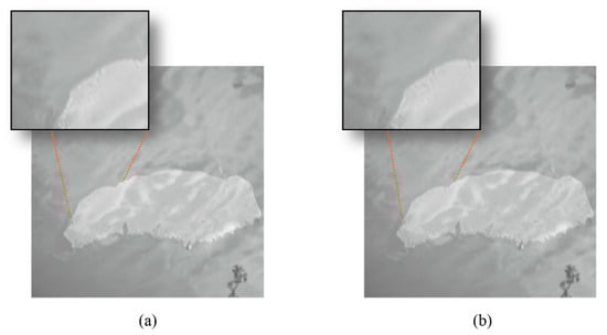 Figure 2 shows the calculation operation of the GCA. The left image is the original image and the right is the downsampled one. Comparing the two images, it is obvious that some highlighted spots that are indicated by the red arrows in left picture are removed. In this work, we select 8 × 8 blocks, which means that the downsampled image’s resolution is 500 × 500.