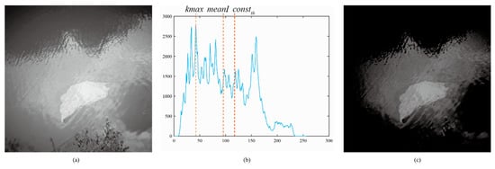 (1) Calculate the average intensity values meanI of image I and the corresponding intensity value kmax of the peak of the histogram. kmax is determined using the following equation: