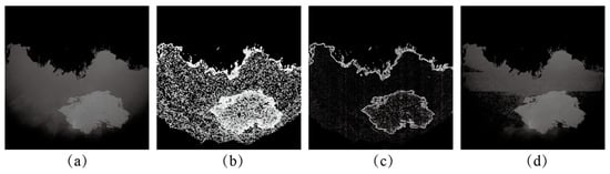 An example of the result of adaptive target enhancement (ATE). (a) The original image; (b) the local entropy image; (c) the gradient image; and (d) the ATE result.