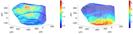 In addition to the radar system, the experiment also used a high-precision LiDAR system (LMS-Z620) to acquire the DEM product in order to compare it with the DEM generated by GB-InSAR. The system’s configuration with the radar and LiDAR original data are shown in Figure 8. This result can be used in the subsequent correlation coefficient verification and DEM error distribution analysis.