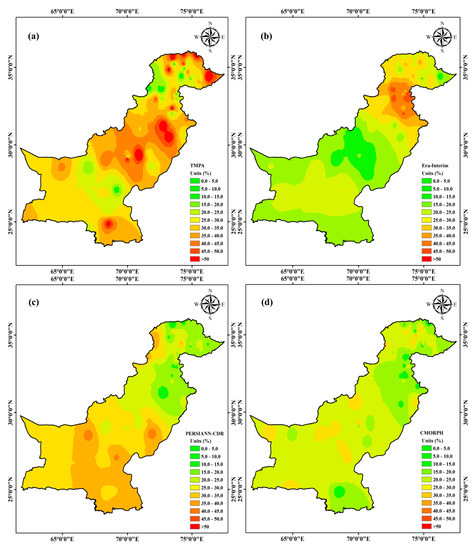 The distribution of GPGs in Pakistan is non-homogenous and very limited/scarce, which is not enough to understand the precipitation pattern, its spatial and temporal variability over different climate regions [48]. In the last few decades, the number of GPGs has significantly increased, but the density is still not able to cope with scientific requirements [49]. Therefore, the application of SPPs and development of MSPDs are of paramount importance over Pakistan as an alternative precipitation source for hydrological and meteorological applications.
