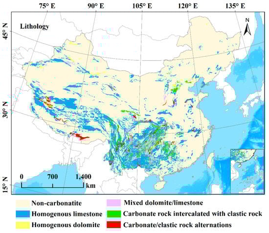 The distribution and zoning of carbonate rocks were from the geological map (1:500,000) and the map of soluble rock types in China (1:4,000,000) supplied by the Ministry of China Geological Survey. After digitalization, carbonate rocks in the karst areas of China were divided into HC, CI, and CA. Homogenous carbonate rocks were further divided into HL, HD, and HDL.