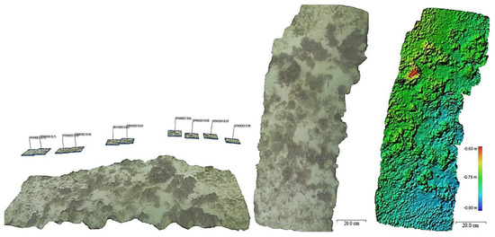 Recent studies have demonstrated the importance of SfM-MVS as another tool for reef monitoring [27,28], long term monitoring of benthic communities and legacy data rescue [25], monitoring the demography and morphometry of soft corals such as gorgonian species [29], large underwater area 3D reconstruction [30], and bathymetry determination [31,32,33]. Moreover, Burns et al. [22], Figueria et al. [34], and Leon et al. [28] used SfM-MVS to measure multiple metrics of 3D habitat complexity, providing accuracy measurements, and computed rugosities. In addition, Storlazzi et al. [35] proved that SfM-MVS techniques are more effective and more quantitatively powerful than classical methods in characterizing benthic habitats. Therefore, this might be considered the end of the “chain-and-tape” method for measuring benthic complexity. Raoult et al. [36] studied the error limits for coral reef measurements observed at various times and by different observers. Their findings showed that coral reef measurements were consistent between observers and over time and also that photographic coverage is more important than the numbers of pictures.