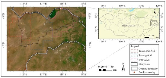 Study area map. The study area is a part of the Eastern Mongolian Steppe, which is one of the largest flat-steppes of Mongolia. The study area is registered in the World Heritage List of the UNESCO.