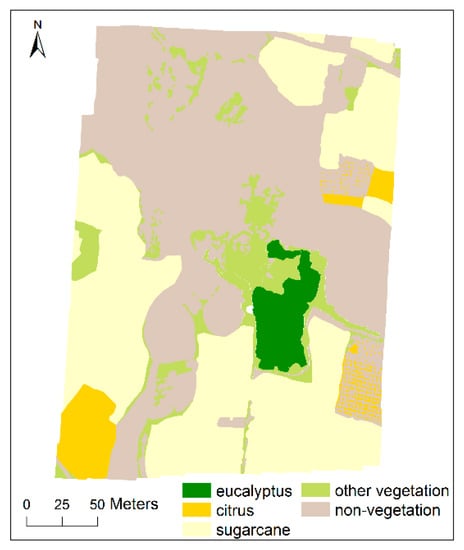 Based on UAV hyperspectral images of 7 different scales, sugarcane, eucalyptus, citrus and other vegetation were classified by using object-based image analysis (OBIA). Specifically, it included: (1) selecting appropriate scale for multi-resolution segmentation; (2) using the mean decrease accuracy (MDA) method for feature evaluation and selection; (3) selecting the classifiers of Support Vector Machines (SVM) and Random Forest (RF) to classify vegetation types of multi-scale images and comparing their accuracy differences; (4) analyzing the variation of appropriate segmentation parameters and feature space of multi-scale images, and discussing the influence of spatial scale variation on vegetation classification of UAV images.