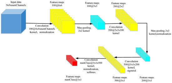 In this paper, our CNN structure is similar to LeNet, except that we abandon the full connected layer, change it to a full convolutional layer [] and adjust the size and number of convolutional layer kernels. The network structure details are shown in Figure 2: