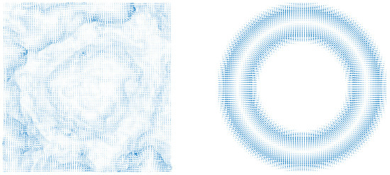 Gradient fields of natural stone circle (left) and torus (right).