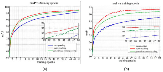 Recently, these pre-trained CNNs and their modified versions have been widely applied in different image retrieval tasks, ranging from computer vision [42,43,44] to remote sensing [2,45]. Chaudhuri et al. [46] put forward the SGCN architecture for evaluating the similarity between paired graphs that are trained for CBIR by contrastive loss function. Famao et al. [47] use two image-to-class distances to re-rank the initial retrieval result, referred to as the similarity between an image and an image class. For different tasks, people have made some improvements in various stages of the search. Bindita et al. [48] solve multilabel RS image retrieval problems drawing on a semi-supervised graph-theoretic method and expensive and time-consuming problems by multi-label annotation images. Babenko and Lempitsky [24] form image signatures through aggregating deep convolutional descriptors by sum-pooling of convolutional features (SPoC). Tolias et al. [49] used many multi-scale overlapping regions of the last convolutional feature map to extract the maximum activations of convolutions (MAC). In [50], a trainable generalized mean (GeM) pool layer replaces the MAC layer. This greatly improves retrieval accuracy. A new CNN architecture has recently been proposed in [51], which can learn and extract multi-scale local descriptors in the salient regions of images. RSIR can be viewed as a branch of image retrieval. They are still identified by visual content based on similar images. However, due to the particularity of RS images, it may not be suitable for the direct deployment of some commonly used technologies. In this paper, we will compare the commonly used techniques and build the most suitable retrieval method for remote sensing images.