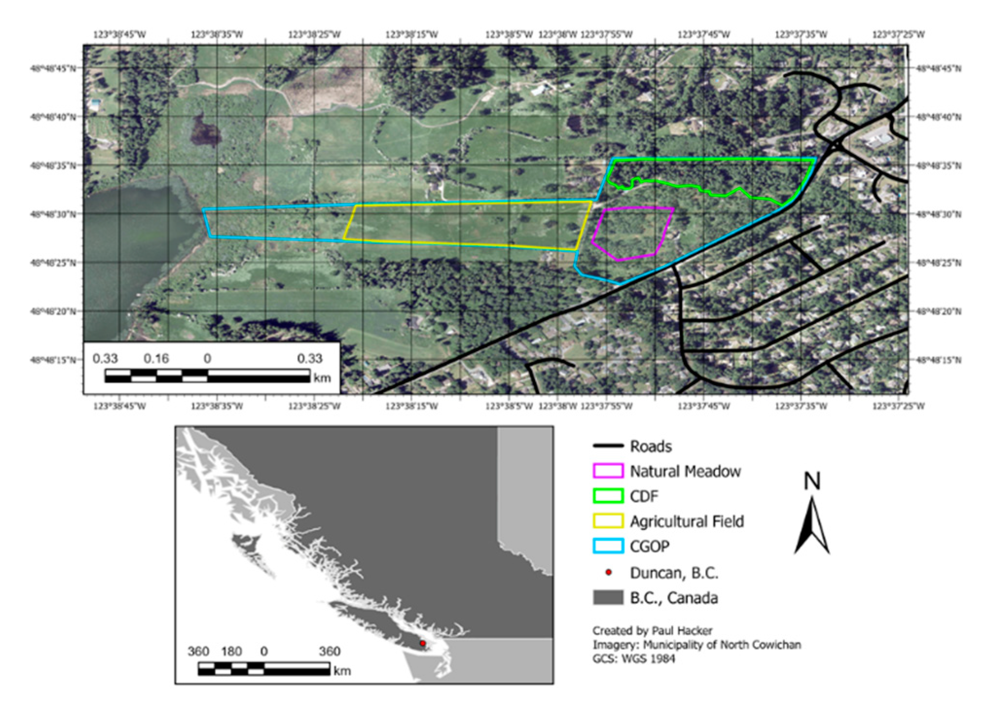 - Banman, I.; Munson, T. Restoring British Columbia’s Garry Oak Ecosystems—Principles and Practices; Victoria, BC, Canada, 2011; ISBN 9780973218145. [Google Scholar]