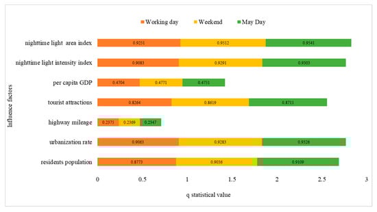 The factor detector is used to detect the explanatory power of the seven independent variables for explaining the passenger flow. The detection result is shown in Figure 8.
