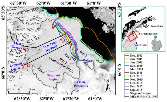 Qiao, G.; Li, Y.; Guo, S.; Ye, W. Evolving Instability of the Scar Inlet Ice Shelf based on Sequential Landsat Images Spanning 2005–2018. Remote Sens. 2020, 12, 36. https://doi.org/10.3390/rs12010036