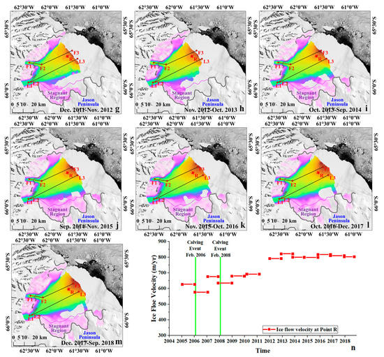 - Chen, J.; Ke, C.; Zhou, X.; Shao, Z.; Li, L. Surface velocity estimations of ice shelves in the northern Antarctic Peninsula derived from MODIS data. J. Geogr. Sci. 2016, 26, 243–256. [Google Scholar] [CrossRef]