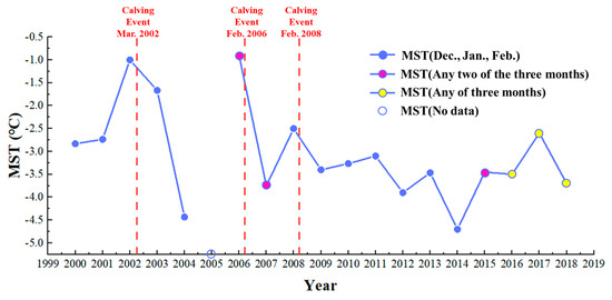 2.5. Mean austral Summer Temperature and Fast Ice Monitoring