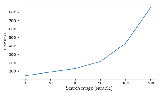 The relationship between consuming time and search range. The experiment was tested on the platform with AMD R5-2600X and GTX-2070.