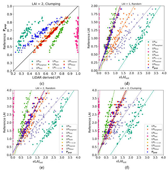 - Morsdorf, F.; Kötz, B.; Meier, E.; Itten, K.I.; Allgöwer, B. Estimation of LAI and fractional cover from small footprint airborne laser scanning data based on gap fraction. Remote Sens. Environ. 2006, 104, 50–61. [Google Scholar] [CrossRef]